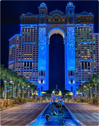 К услугам гостей — три бассейна, включая детский аквапарк и бассейн с волнами для детей и взрослых, 10 ресторанов и баров, в которых предлагается более 260 брендов напитков. Еще здесь есть единственная в ОАЭ снежная комната.