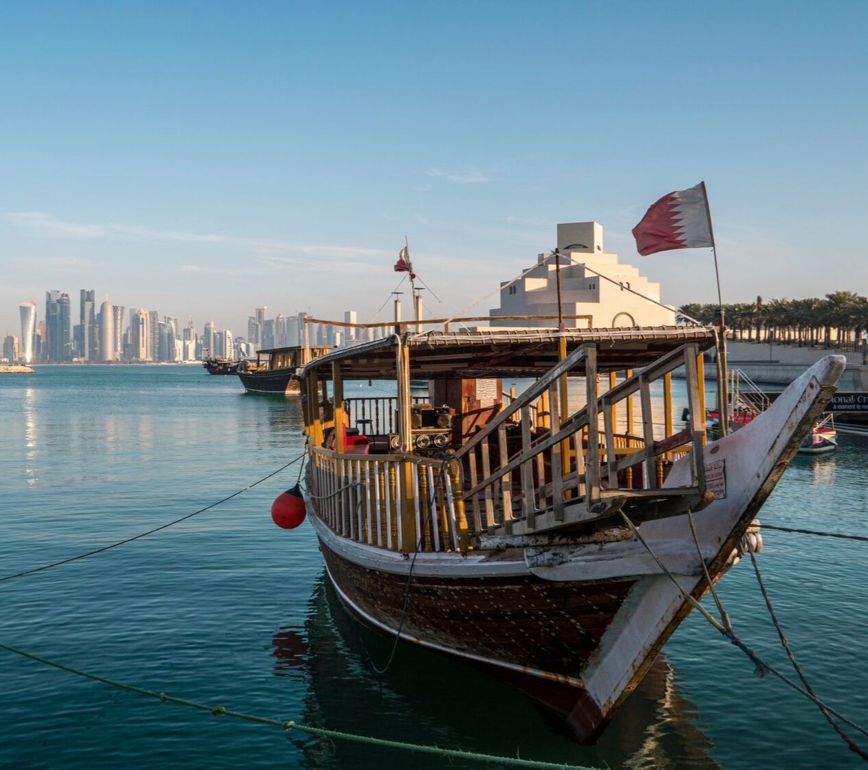 Длинная, около 7 км, набережная Корниш — не просто красивая улица, а настоящая достопримечательность: с нее открываются интересные виды на Персидский залив, небоскребы и традиционные лодки дау (на них можно совершить морскую прогулку).